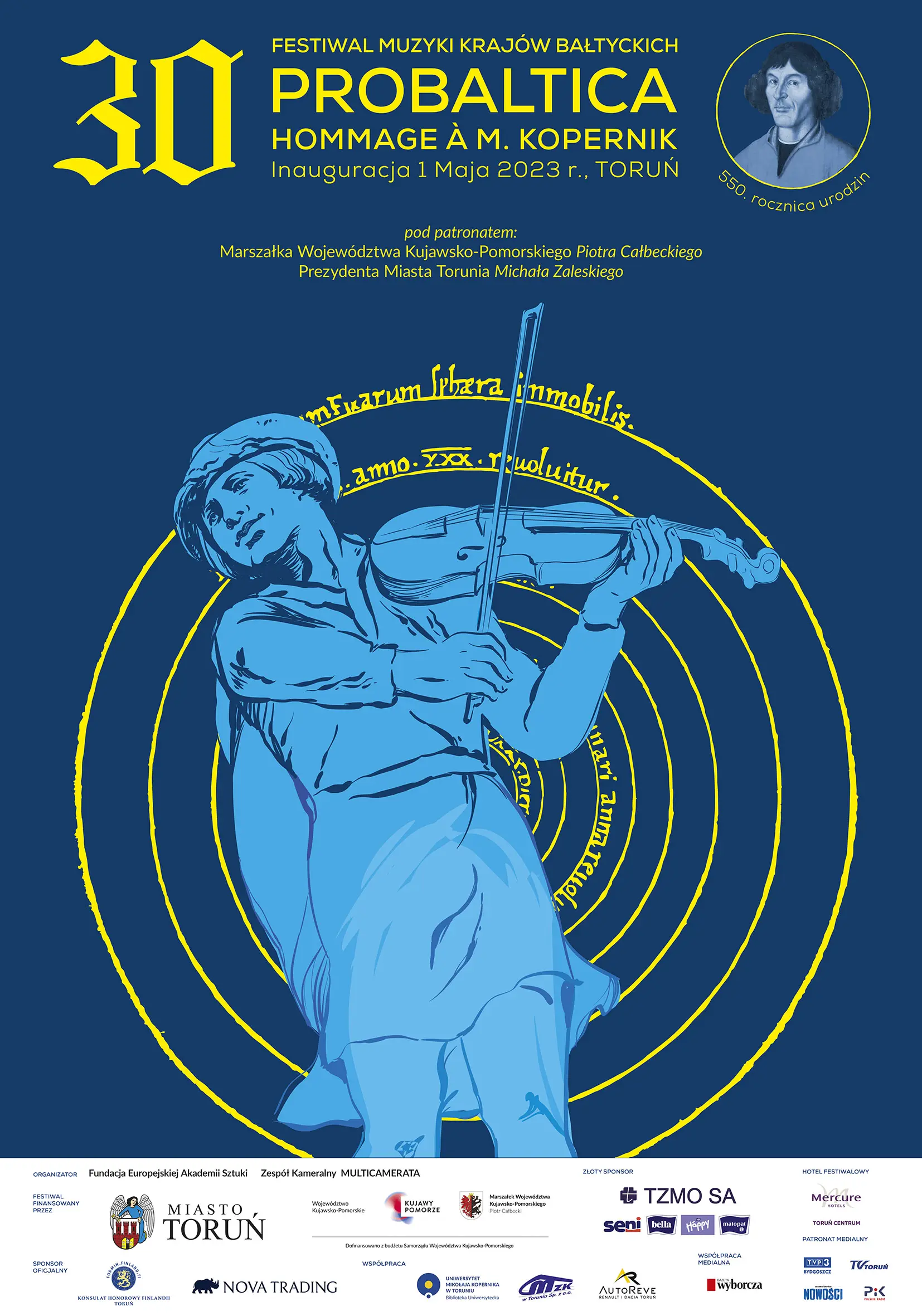 W poniedziałek 1 maja 2023 r. o godz. 18:00 w Sali Koncertowej Centrum Kulturalno-Kongresowego Jordanki w Toruniu odbędzie się Koncert Prezydencki inaugurujący 30. Festiwal Probaltica. Festiwal Muzyki i Sztuki Krajów Bałtyckich "Probaltica" to jeden z najważniejszych festiwali w Toruniu. Poza Toruniem koncerty i wystawy odbywają się także w Grudziądzu i Gdańsku. Ideą przewodnią Festiwalu jest inicjowanie współpracy, szczególnie w dziedzinie muzyki i sztuk pięknych oraz prezentowanie dorobku kulturalnego biorących w nim udział wszystkich państw Morza Bałtyckiego. Poznanie, często nieznanej, nawet mimo geograficznej bliskości, kultury uczestniczących krajów ma doprowadzić do porozumienia i współpracy w ramach integrującej się Europy. Za wybitne osiągnięcia na polu muzyki i sztuki przyznawane są festiwalowe nagrody - Flisaki. W 1998 roku statuetkę Złotego Flisaka wręczono Krzysztofowi Pendereckiemu. Festiwal "Probaltica" został kilkakrotnie wysoko oceniony przez Komisję Europejską w Brukseli jako jeden z najlepszych pomysłów na integrację europejską. W ramach inauguruacji tegorocznego jubileuszowego festiwalu, celem uczczenia bohaterstwa narodu ukraińskiego w walce z rosyjskim najazdem, zagra Orkiestra Symfoniczna Lwowskiej Filharmonii Narodowej pod dyrekcją Volodymyra Syvokhipa. Solistka: Maria Klymenko. Fortepian w programie: P. Perkowski - Pomnik Kopernika, F. Chopin – Koncert fortepianowy e-moll, B. Latoszyński - III Symfonia. Więcej: https://www.torun.pl/pl/30-festiwal-probaltica-inauguracja